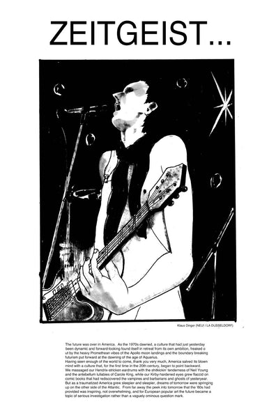 “Zeitgeist” – Matt Seneca discusses Krautrock – German music from the 70s that explored “rock music” divorced from its American blues origins. While American culture grew nostalgic in the 70s, European music and comics looked to the future and embraced the truly cosmic and psychedelic. The article is accompanied by illustrations of influential German musicians by Jonny Negron.